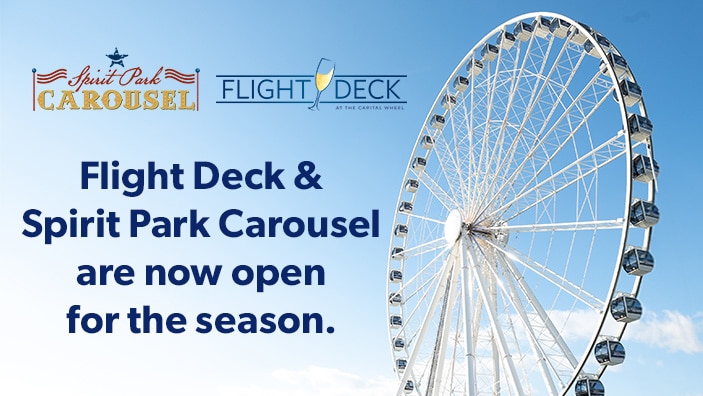 - The Capital Wheel — Soar above the skyline for magnificent views of the Washington Monument and Capitol Building in climate-controlled comfort.
