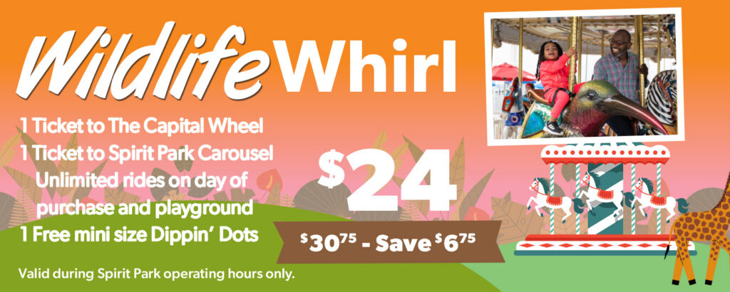 We are thrilled to introduce our brand-new Wildlife Package—the ultimate adventure for the little ones! It includes a ticket to The Capital Wheel, unlimited spins on the Carousel, and fun at the playground, topping it off, kids ages 3–11 get a free mini Dippin’ Dots to sweeten the package. Come make some springtime memories where the fun never stops!